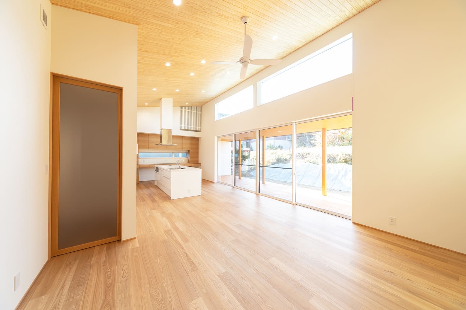 例えば、高く美しい勾配天井は、視線が気持ちよく抜ける圧倒的な開放感を生み出し、空間に豊かな縦の広がりをもたらします。