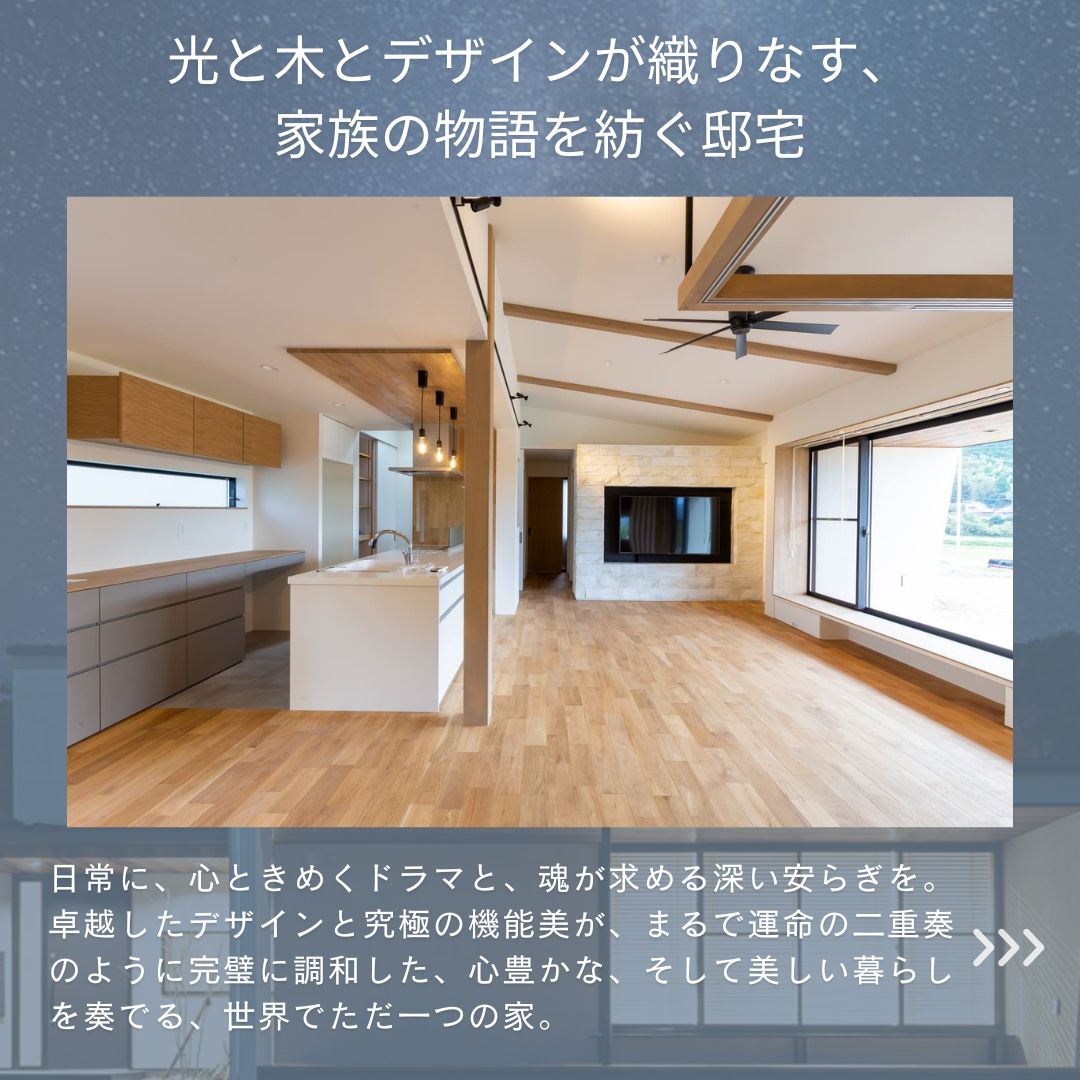 そこに住まうご家族が、いつまでも色褪せることのない、かけがえのない美しい時間を優しく紡ぎ、太陽のような笑顔があふれる毎日を送るための、世界でたった一つの特別な「舞台」を、心を込めて、情熱を込めて創り上げています。