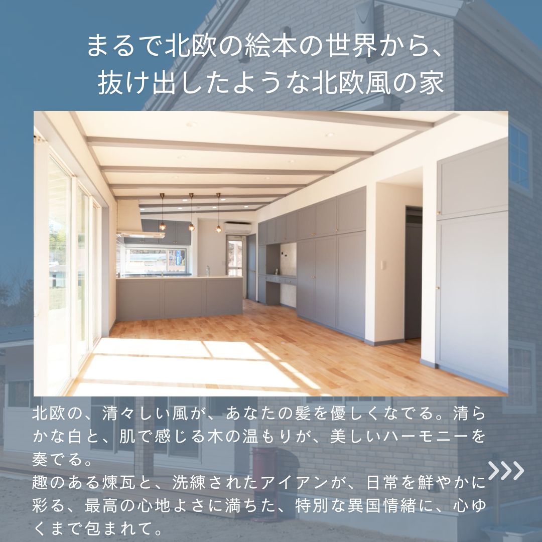 ・そして、まるで幼い頃に夢見た童話の世界に迷い込んだかのような、温もりあふれる暖炉のある家や、シンプルながらも心ときめくディテールに満ちた、清々しい北欧風の住まい。