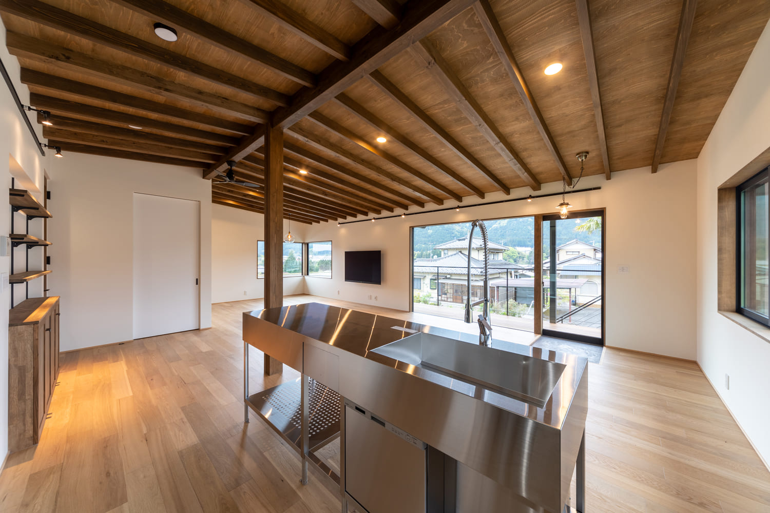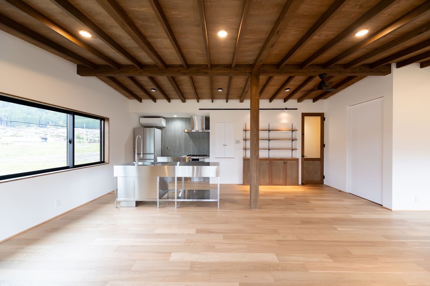 2階のプライベートな住居スペースに足を踏み入れると、そこには思わず大きく深呼吸したくなるような、どこまでも続く開放感に満ちた、特別なリビングダイニングが広がります。
