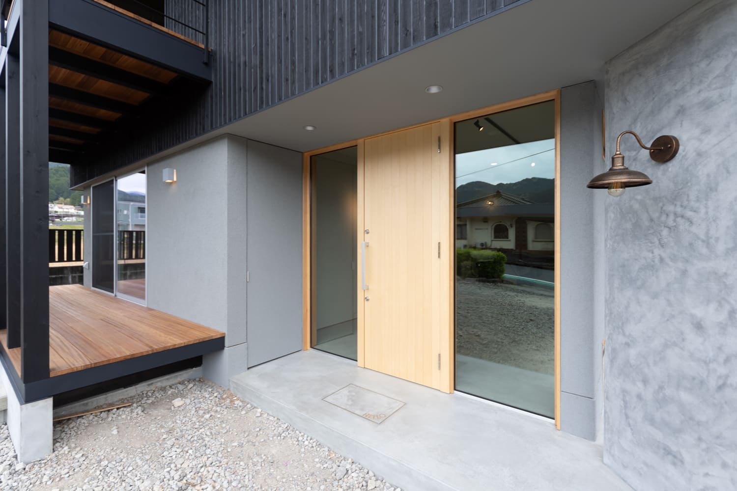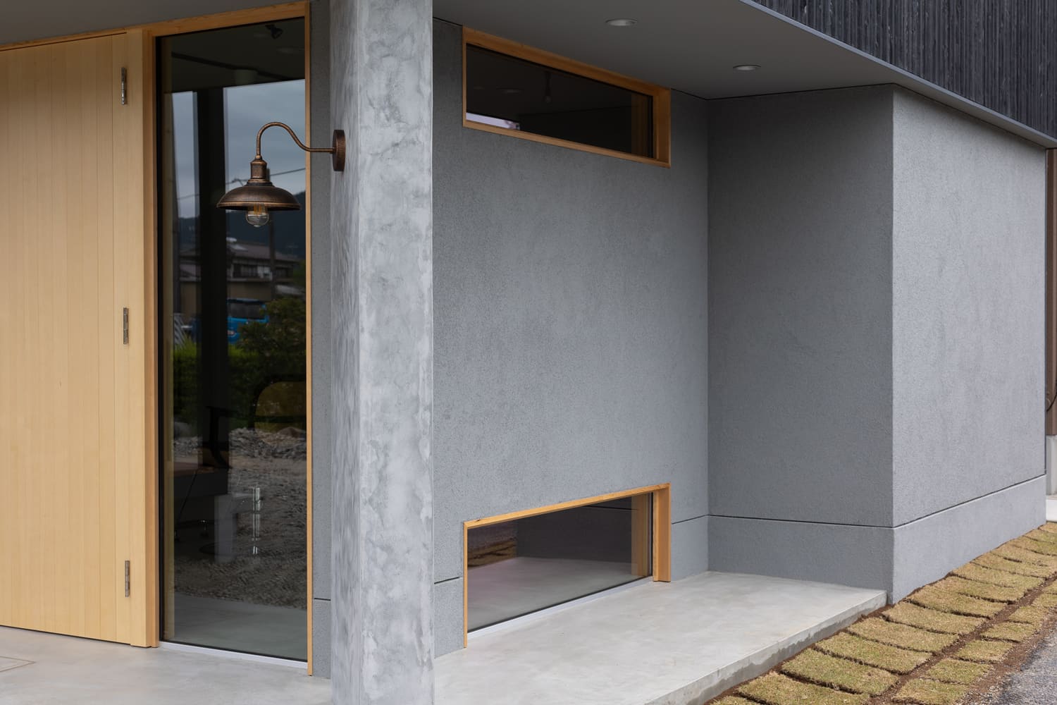 異なる素材が織りなす美しいコントラストが、建物全体に、他にはない深みと、揺るぎない個性を与えています。