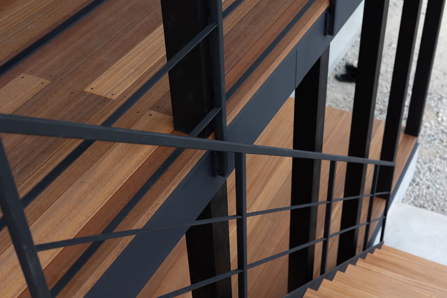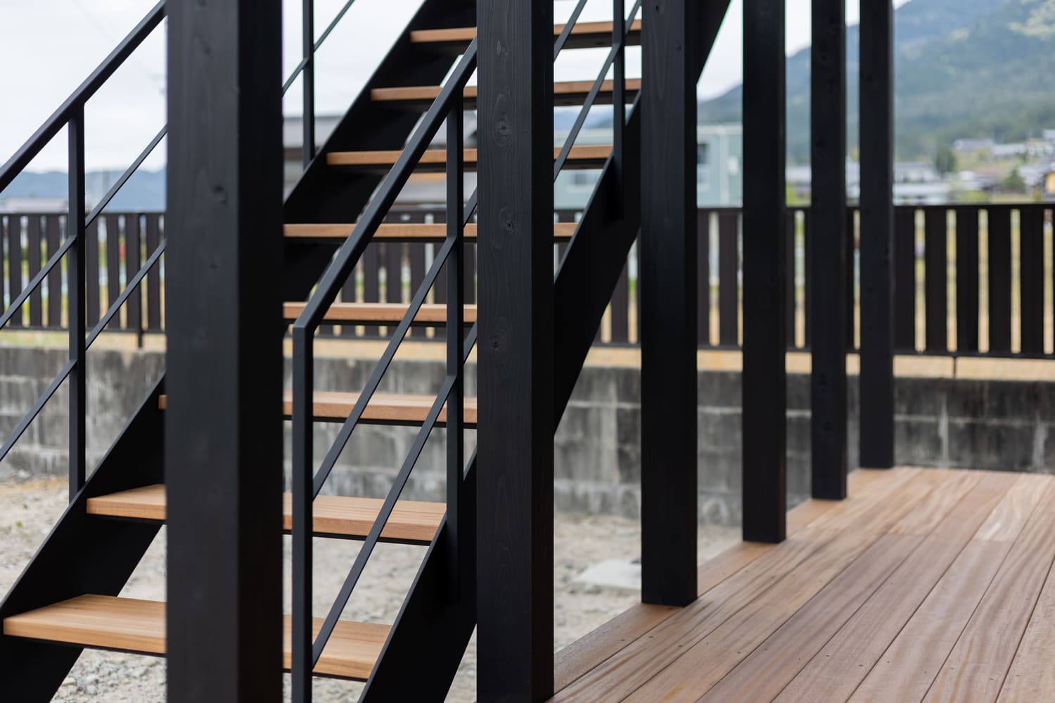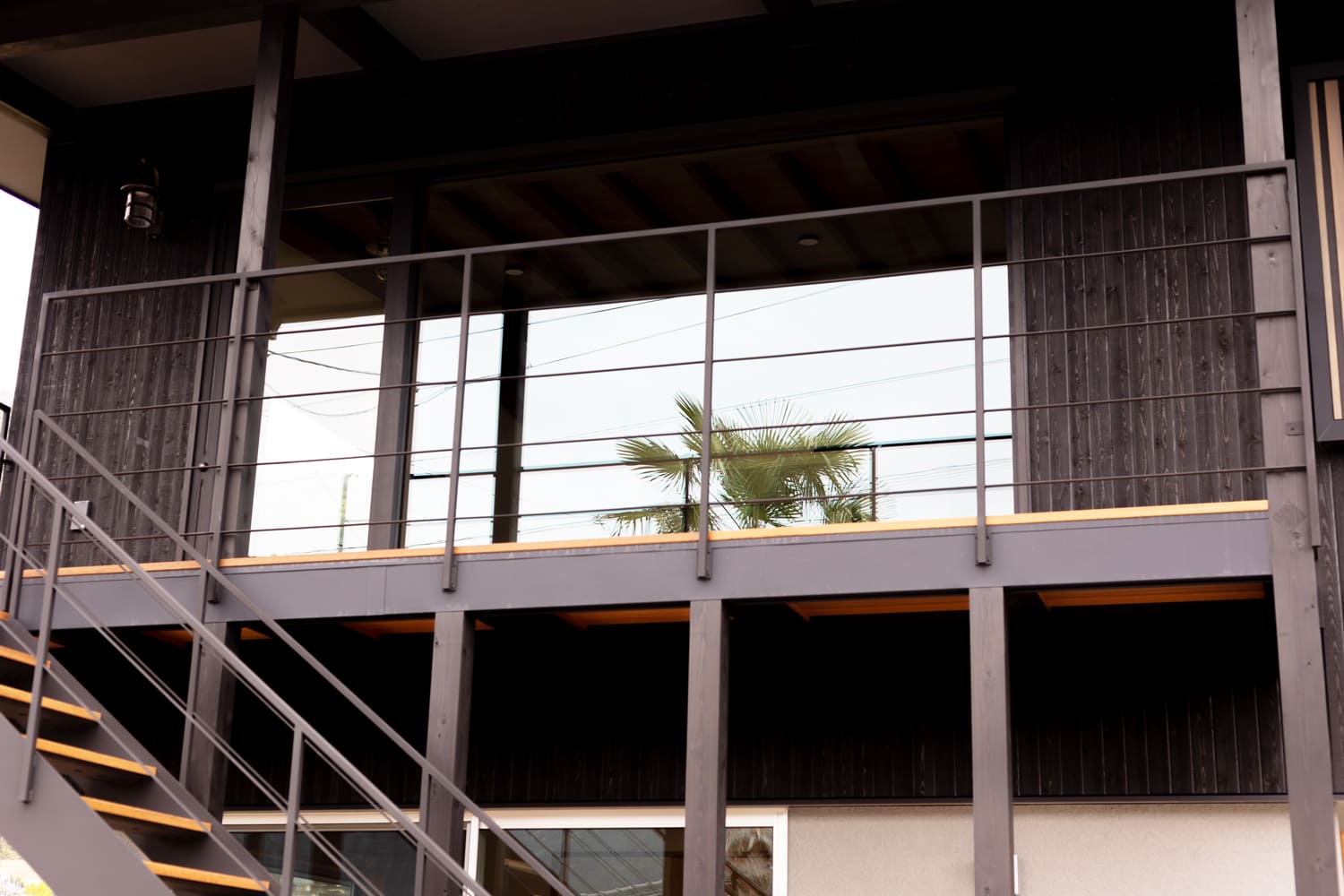 都会的でシャープなブラックで統一された、美しい鉄骨のフレームと手すりは、洗練されたモダンな印象を強く与えます。
