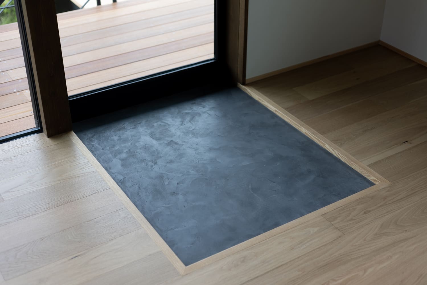 その一方で、一歩一歩踏みしめる踏み板には、足裏に優しい温もりを感じる、上質な天然木が贅沢に用いられ、インダストリアルなクールな雰囲気の中に、どこか心がほっとするような、温かな優しさを絶妙に添えています。