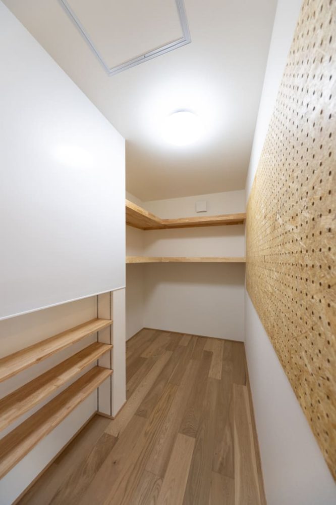 まるで秘密の部屋のような、広々としたウォークインクローゼットや、壁面に美しく設けられた、職人の技が光る造作棚など、日々の暮らしを豊かにする収納スペースも、驚くほど充実しています。