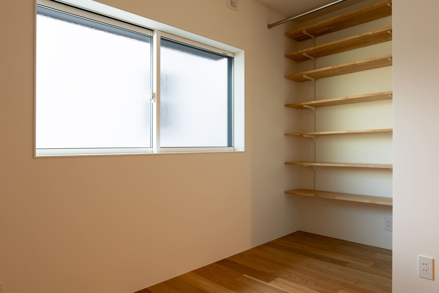 淡く、そして上品なベージュを基調とした美しい壁パネルは、まるで天然木のような、温もりあふれる優しい風合いで、空間全体に、深い落ち着きと、心がほっとするような温もりを感じさせます。