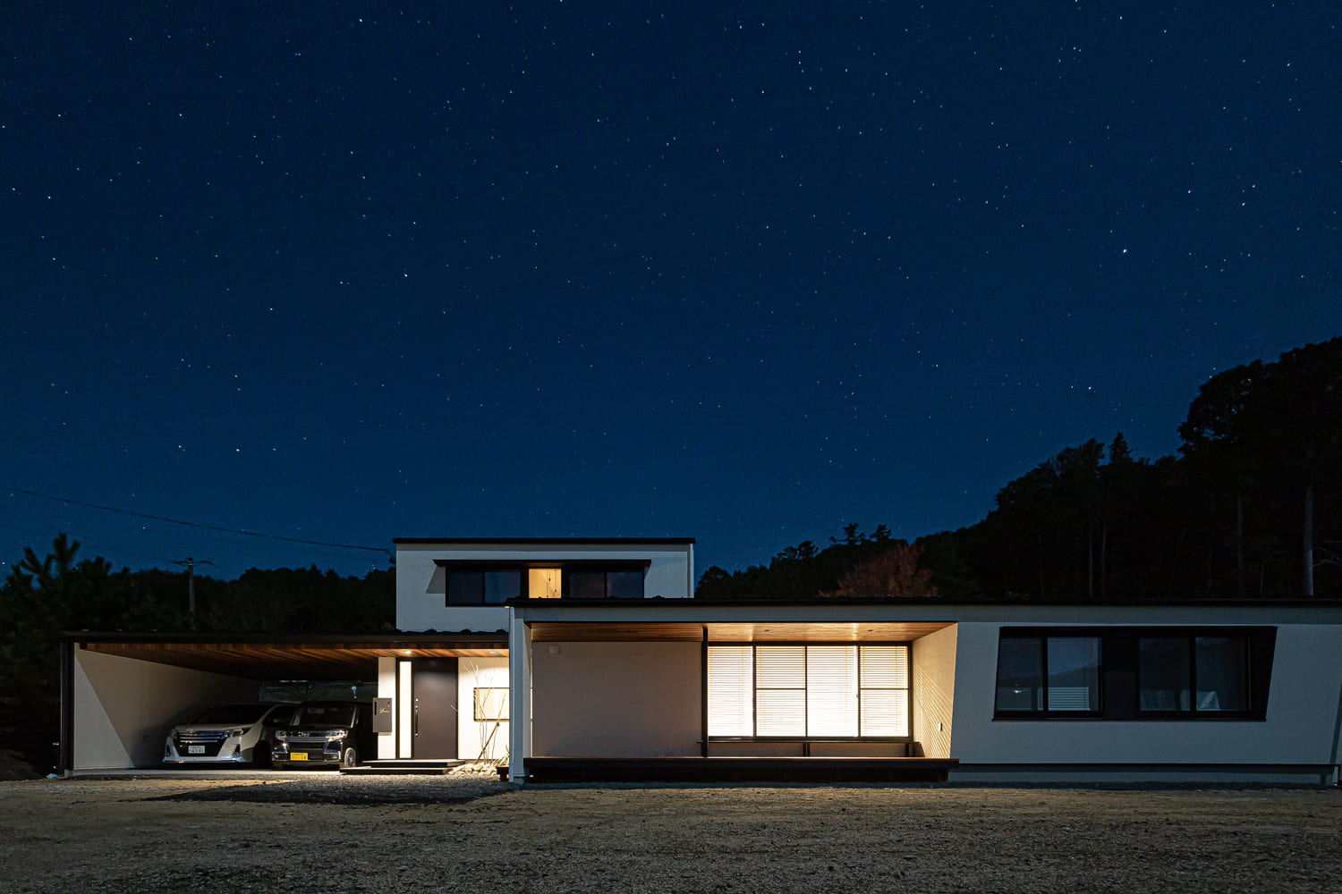 そして、陽が静かに落ち、夜の帳が優しく下り、頭上の広大な空には、まるでダイヤモンドを散りばめたかのように、満天の星が美しく瞬き始めると、この特別な家は、昼間とは全く異なる、もう一つの、幻想的でロマンティックな表情を、私たちに見せてくれます。