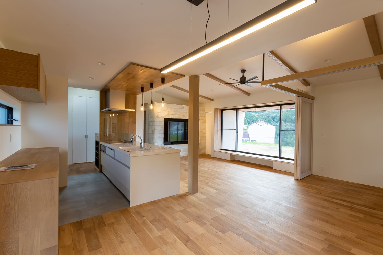 リビングの中心には、まるで世界への窓のように、大きな、大きな窓。