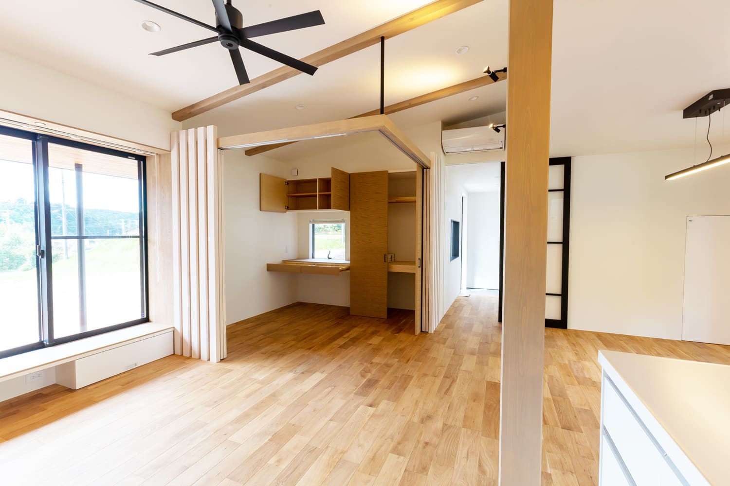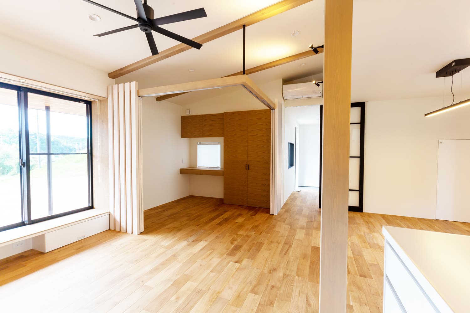 美しい間仕切りは、優しい光を程よく、そして効果的に通すため、たとえ閉め切ったとしても、圧迫感を一切感じさせず、空間全体が、柔らかな、そして心地よい明るさを、常に保ちます。