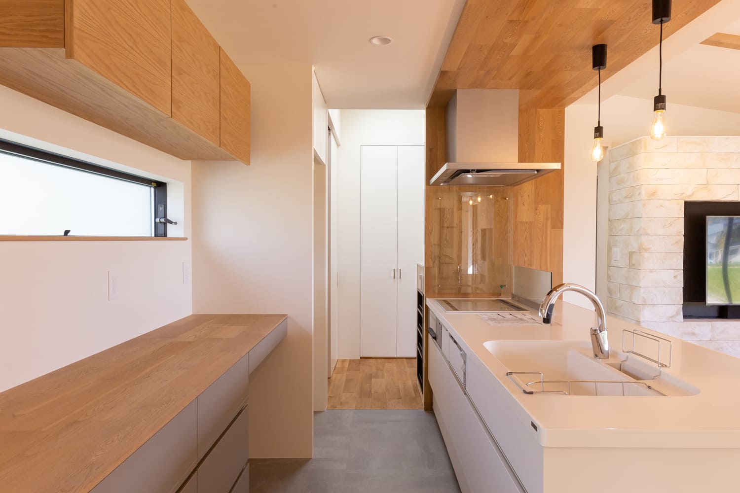 そして、壁に効果的に設けられた横長の窓からは、朝の清々しい、柔らかな自然光がたっぷりと差し込み、キッチン全体を、どこまでも明るく、そして心地よく照らしてくれることでしょう。