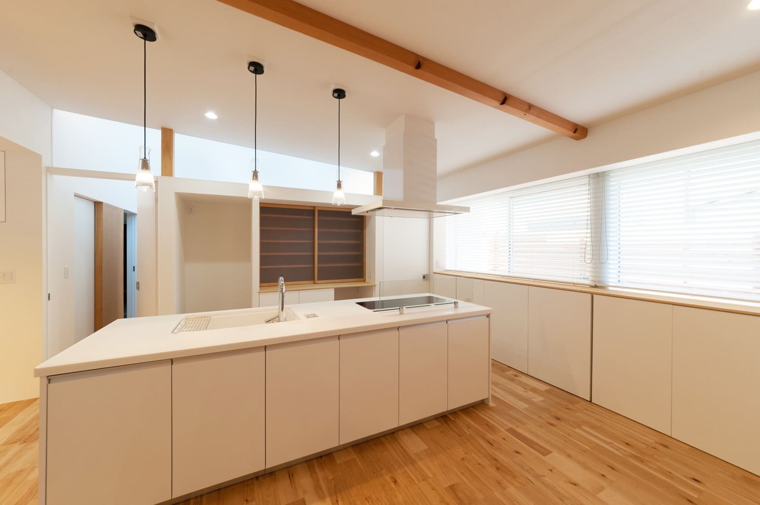 清らかな白を基調とすることで、家全体が、驚くほど明るく、そして魂が解放されるような、伸びやかな開放的な印象に。