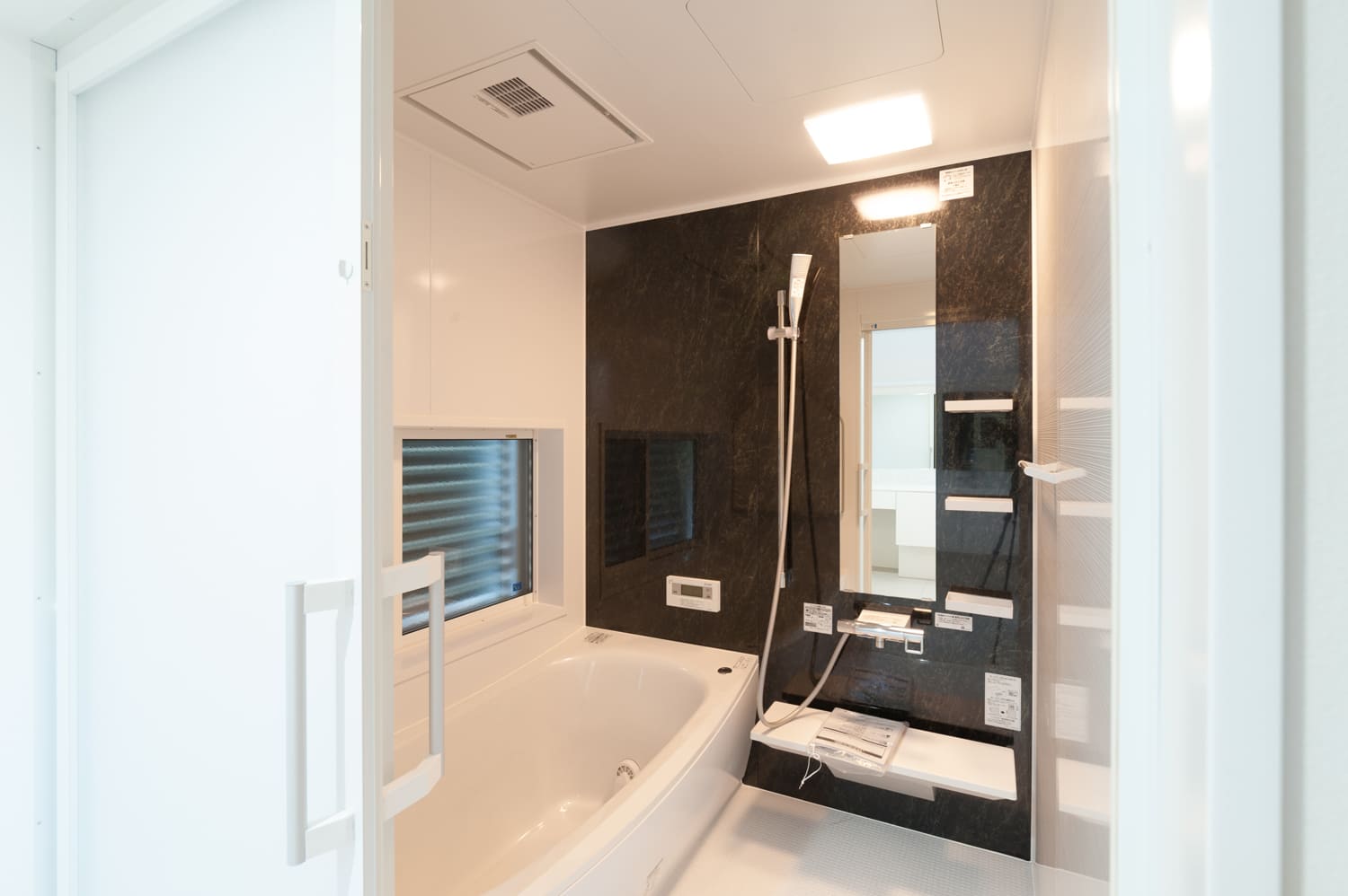 この、どこまでもモダンで、そして美しい平屋のバスルームは、清らかで美しい清潔感にあふれた、洗練されたデザインと、使う人のことを第一に考えた、卓越した機能性を、完璧なまでに追求し、まるで、世界的に有名な高級ホテルの、贅沢なスイートルームのバスルームのような、至福の、そして夢のようなひとときを、あなたに優雅に演出します。