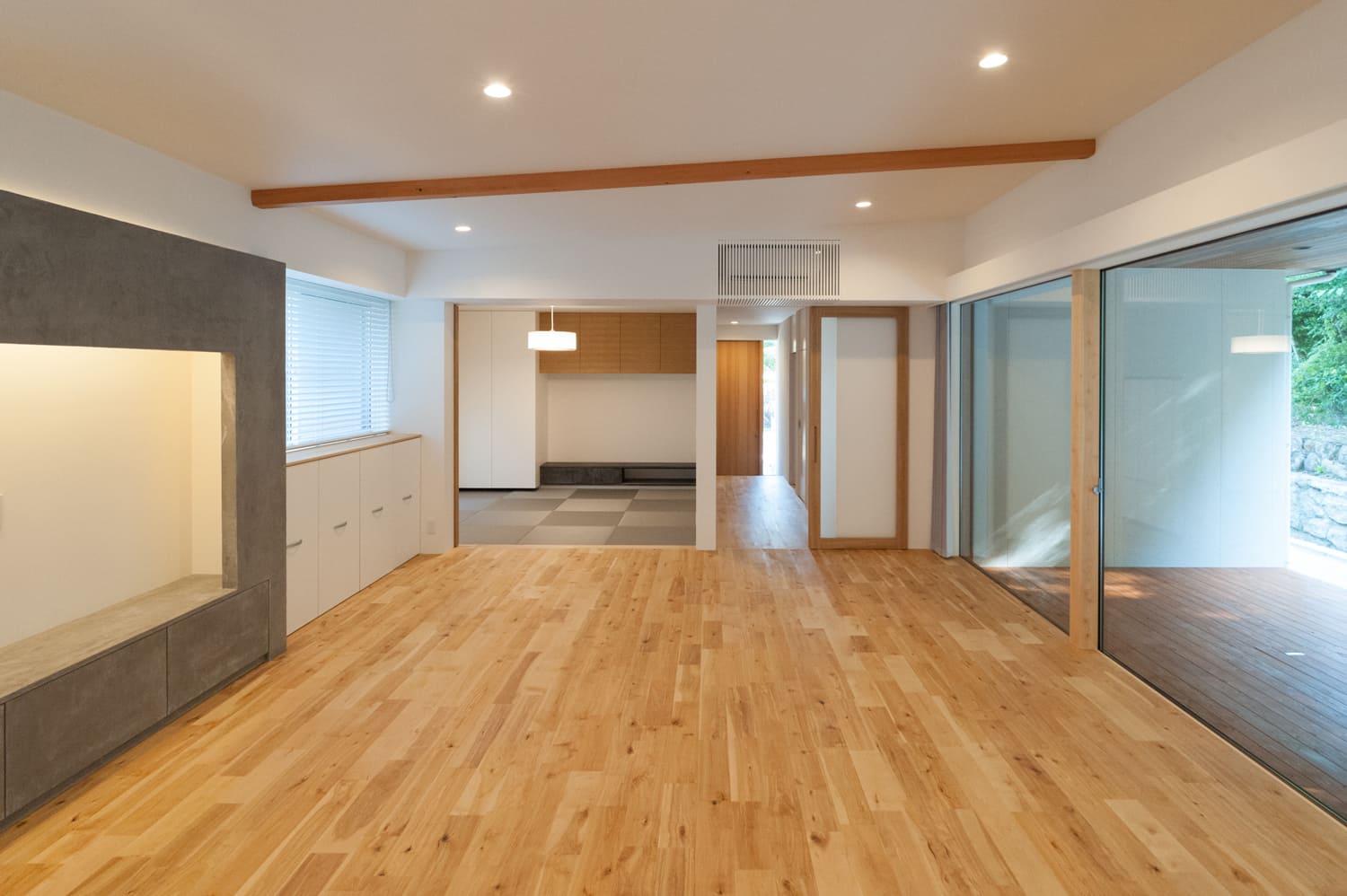 肌で感じる木の温もりと、素足で触れる畳の、どこまでも心地よい感触が、ともすればクールで無機質になりがちな、現代的なデザインの中に、どこか懐かしく、そして心がほっとするような、深い安心感を与え、そこに住まう人の、心の奥深くに、静かに、しかし確かに響く、豊かな、そしてかけがえのない時間をもたらします。