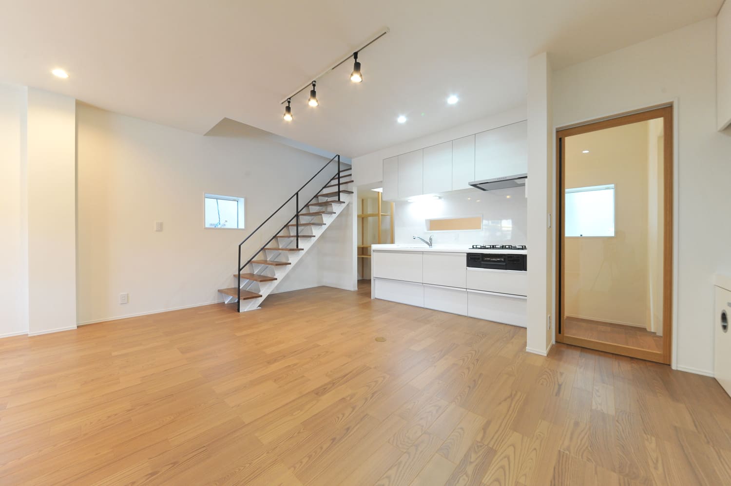 また、壁に、まるで以前からそこにあったかのように、自然に、そして美しく取り付けられた、どこまでもシンプルな木製の階段は、ミニマルで洗練された空間に、まるで呼吸をするように自然に溶け込み、肌で感じる温もりと、心が深く落ち着く静けさを、絶妙なバランスで添えています。