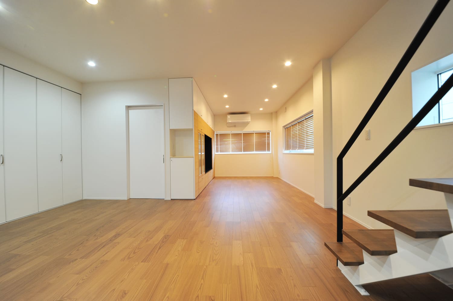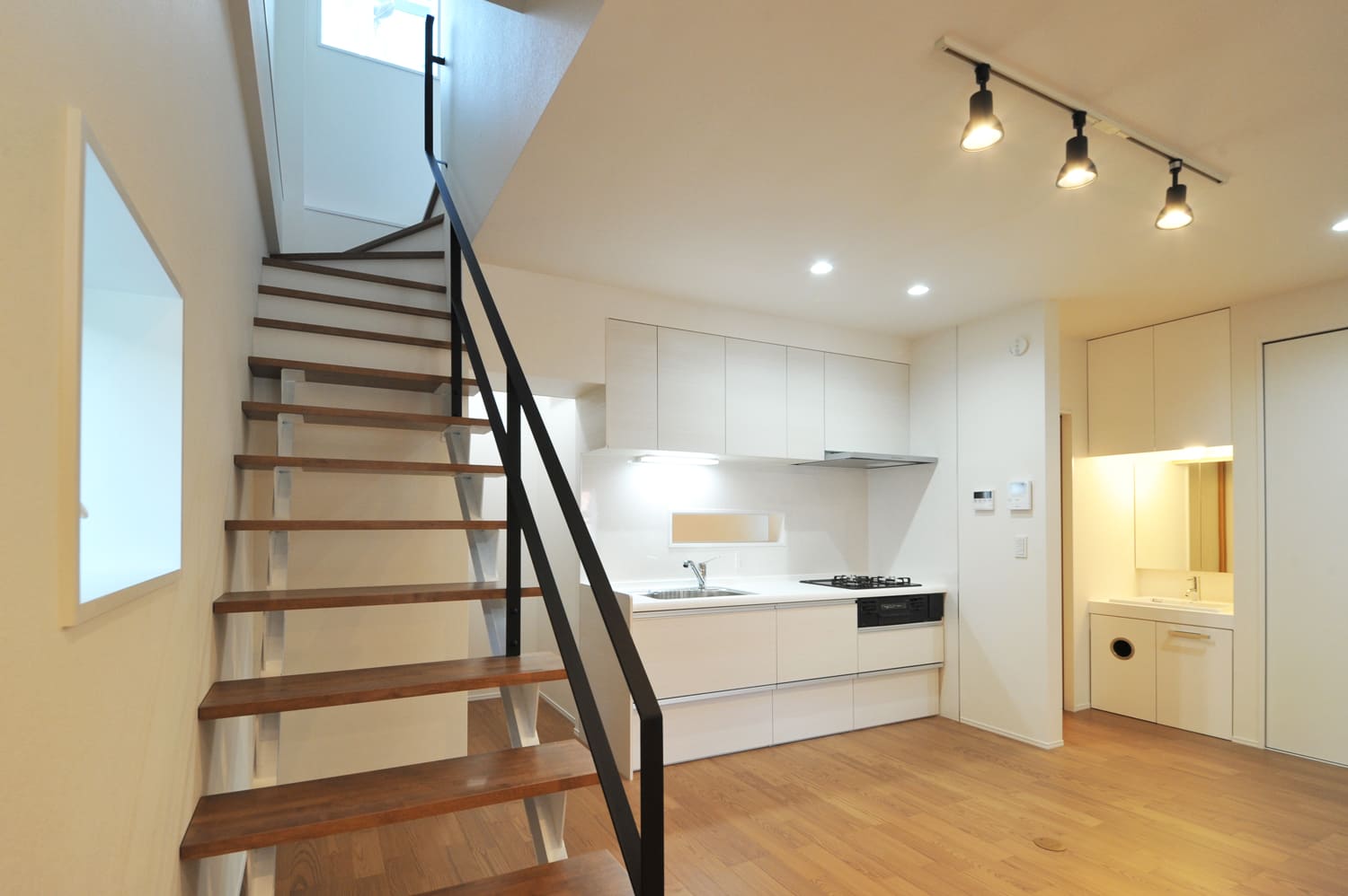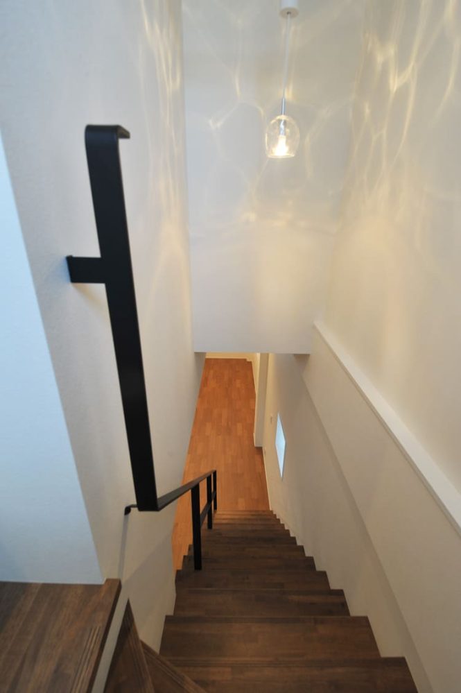 温もりあふれる、上質な木製の美しい踏み板と、都会的でシャープな、美しいアイアンの手すりとの、息をのむほど美しいコントラストは、まさに、スタイリッシュモダンという、美の真髄を、完璧なまでに体現。